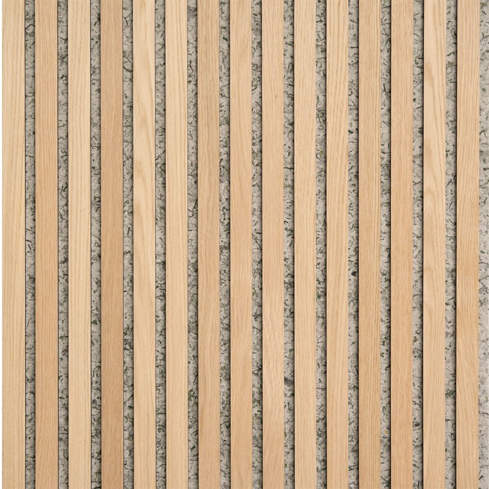 Kyseessä on akustiikkapaneeli, jonka huopa koostuu 65-prosenttisesti kierrätetyistä jalkapalloseurojen harjoituskentiltä peräisin olevista tekonurmista. Tekonurmi leikataan pieniksi paloiksi ja sekoitetaan huovaksi, mikä antaa paneelille ainutlaatuisen ilmeen. MDF:stä valmistetut rimat, joiden etupuolella on aito puuviilu, viimeistelevät akustiikkapaneelimme.